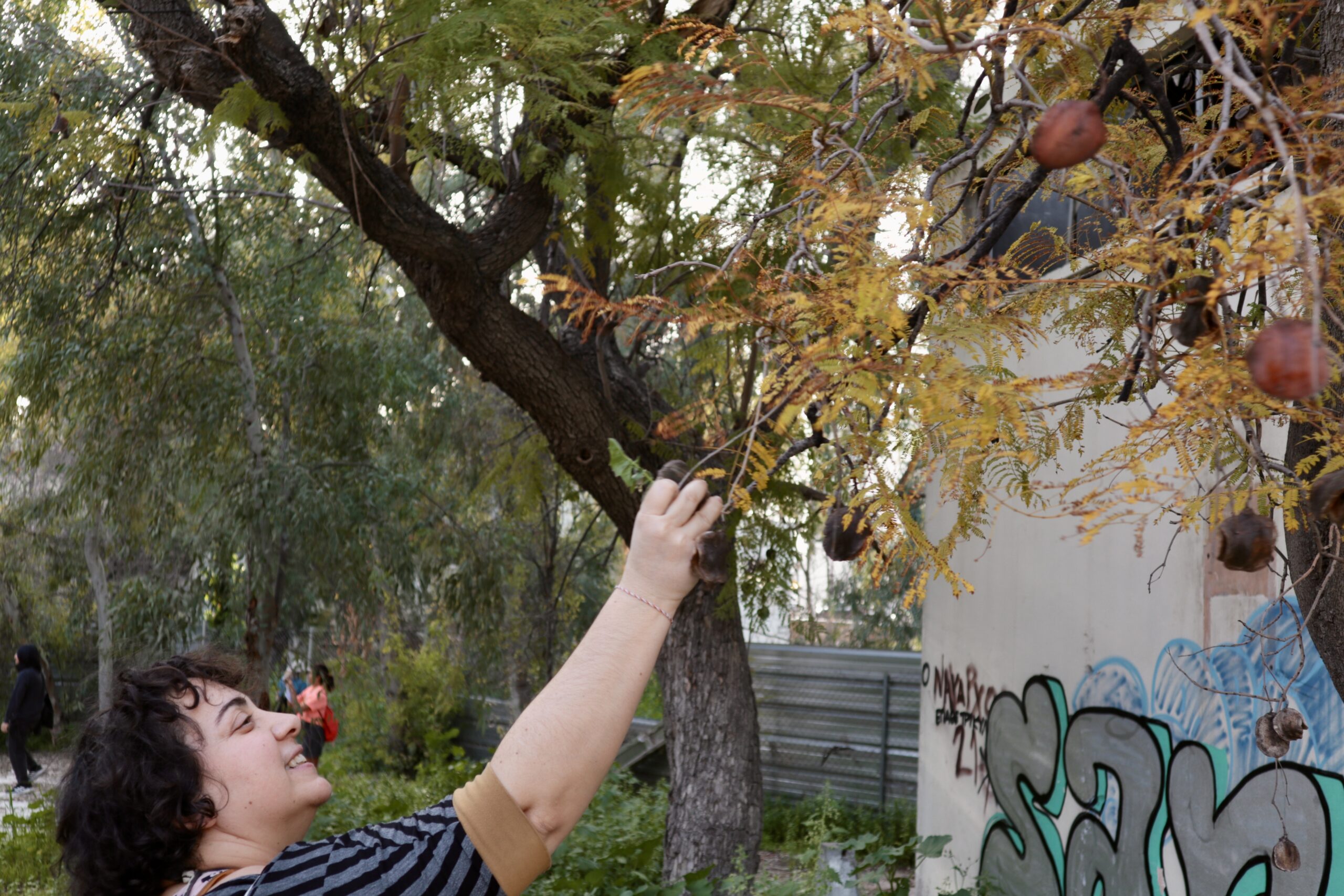 We walk together with Eleni Burou a botanoligist, through Nea Ionia toward the uncovered section of the Podoniftis River in Nea Filadelfeia. The route passes through an industrial area layered with the silent, multicultural, migrant histories of the neighborhood. As we move, the trees and plants become our guides—Mulberry (Μουριά), Eucalyptus (Ευκάλυπτος), Bitter Orange (Νεραντζιά), Kumquat (Κουμκουάτ), Olive (Ελιά), Lemon (Λεμονιά), Pomegranate (Ροδιά), Rose Geranium (Αρμπαρόριζα). They offer another kind of archive. They speak of displacement and adaptation, of care, nourishment, and survival. They carry traces of the people who planted them, tended them, brought them from elsewhere.
